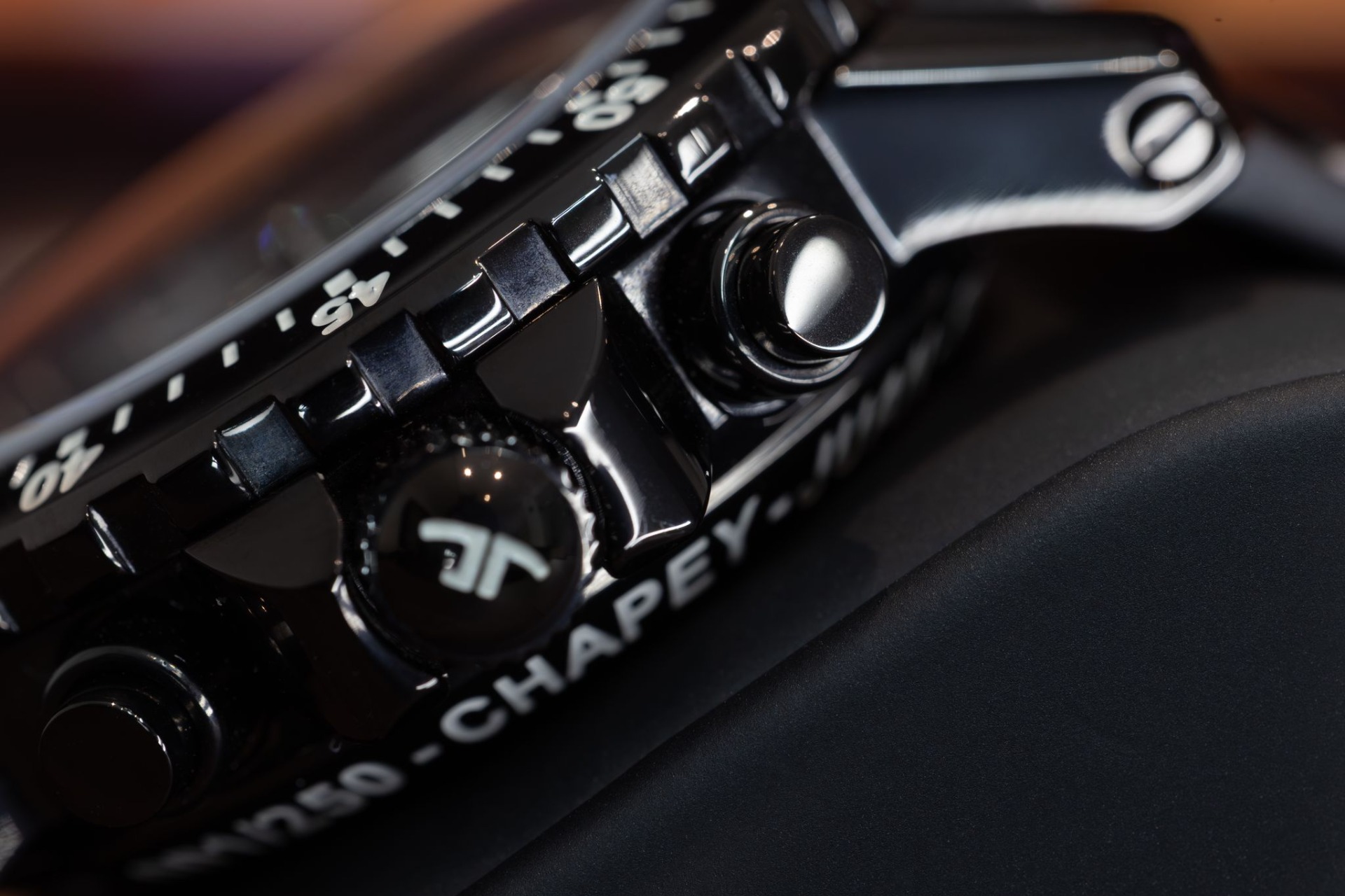 Mouvement chronographe suisse à roue à colonnes, développé par MLJP – La Chaux-de-Fonds, avec finition NAC, réservée aux mouvements de haute horlogerie.